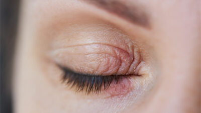 A dermatite palpebral está comumente relacionada à dermatite atópica ou à dermatite alérgica de contato.